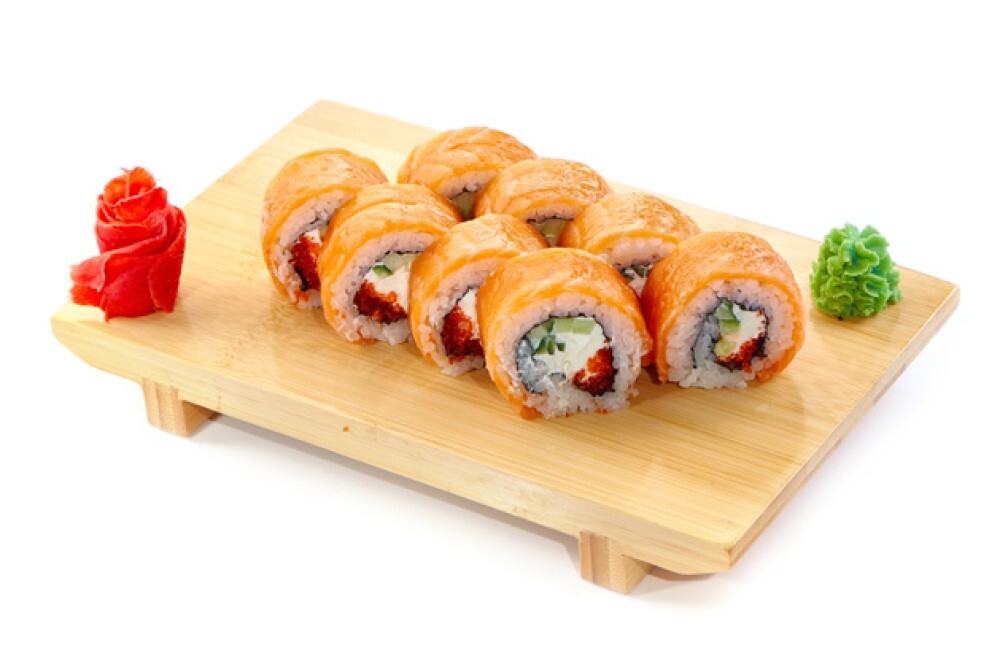 Лосось, творожный сыр, огурец, икра масаго, рис, нори