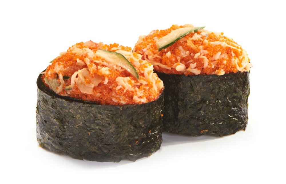 Краб, икра масаго, майонез, огурец, рис, нори 2 шт.