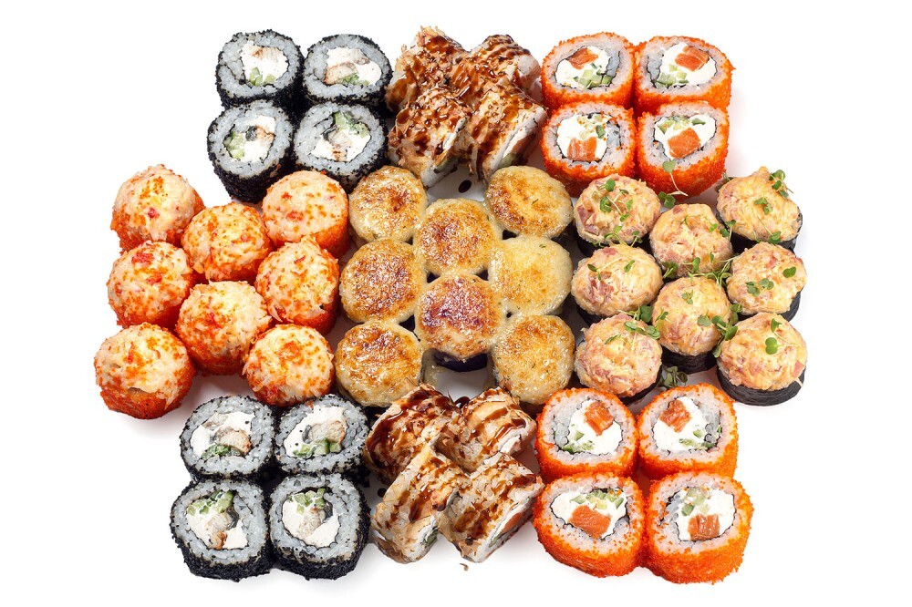 Вашингтон, Бонито с семгой, Филадельфия, запеченные Голден, Сырный Майами и Мексиканский роллы